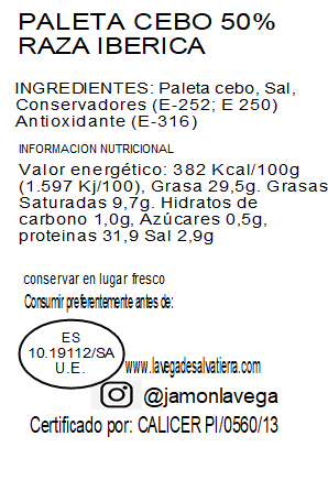 JAMÓN DE CEBO DE CAMPO 50% RAZA IBÉRICA,CURACIÓN NATURAL 100%. PESO SOBRE 8 KG. EDICIÓN FREGENAL